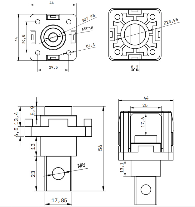 2、Mechanical parameter ■ Contact surface diameter:18mm ■ Screw bore diameter:M8 ■ Tightening torque: M8 Threaded hole (Coarse thread):12N.m MAX